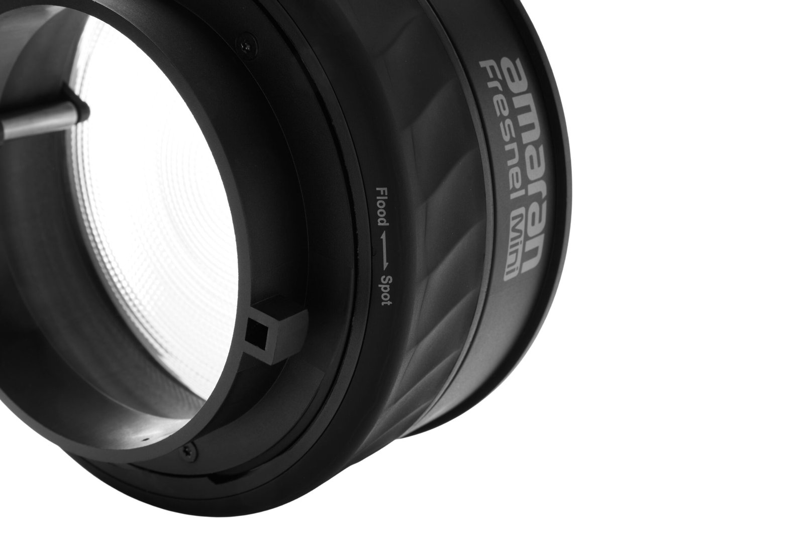 Optimized for the separately available Ray 60c and 120c lights, this Mini Fresnel from amaran intensifies and shapes the light output with an adjustable spot-flood beam from 15 to 30°. At 3.3′, it produces up 23,790 lux with the Ray 60c or 42,600 lux when combined with the 120c (both at 4300K, 15°). For finer control, amaran includes four-leaf barndoors so you can shape, cut, and control the spread and direction of light while eliminating unwanted spill.