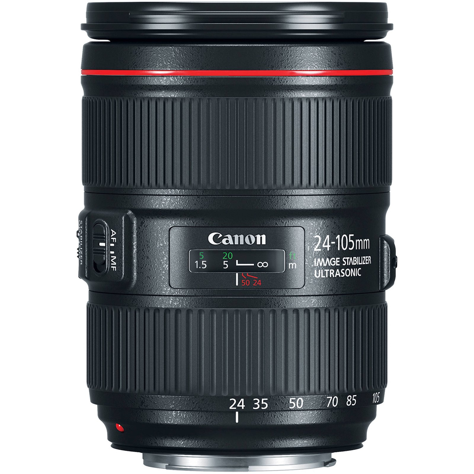 Complementing the refined optics, this 24-105mm f/4 also sports a ring-type USM and internal focusing mechanism to enable quick, quiet, and accurate autofocus performance, as well as full-time manual focus override. A four-stop-effective Image Stabilizer is also used to minimize the appearance of camera shake for sharper handheld shooting. Additionally, this lens is weather-sealed and has a protective fluorine coating on the exposed elements for use in trying environmental conditions.